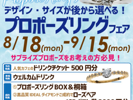 デザイン・サイズが後から選べる!プロポーズリングフェア 8/18(月)~9/15(月・祝)