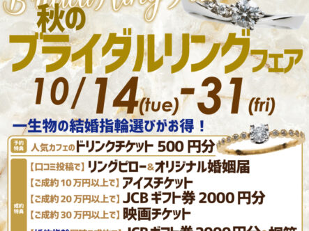 秋のブライダルリング(婚約指輪・結婚指輪)フェア 10/14(火)~10/31(金)