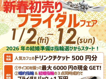 新年初売りブライダルリング(婚約指輪・結婚指輪)フェア 必ずもらえる!現金プレゼント