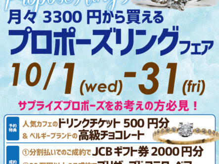 月々3300円で買えるプロポーズリングフェア10/1~10/31日