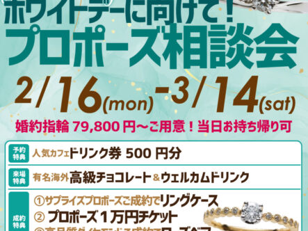 ホワイトデーに向けて!プロポーズ相談会 2/16(月)~3/14(土)