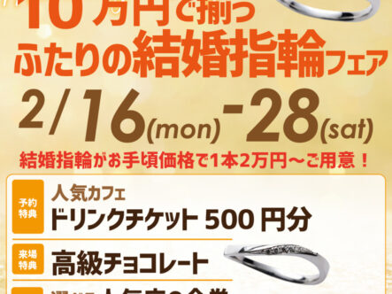 10万円で揃うふたりの結婚指輪フェア 2/16(月)~2/28(土)