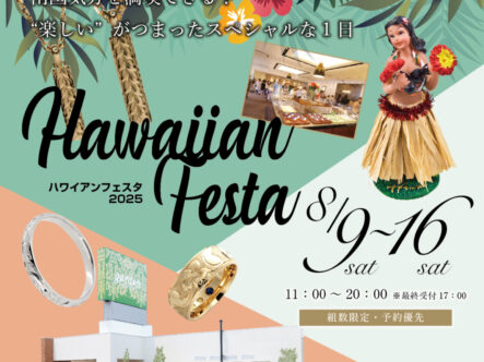 ハワイを感じられるこの日限りのイベントや、普段店頭にはないハワイアンジュエリーを沢山ご用意! 今年のイベントは2000円均一のハワイアンジュエリー展示! ご記念日やプレゼントに是非お立ち寄りください。 Hawaiian … 続きを読む 8月16日(土)毎年大好評のハワイアンフェスタ開催!2000円均一ハワイアンジュエリー