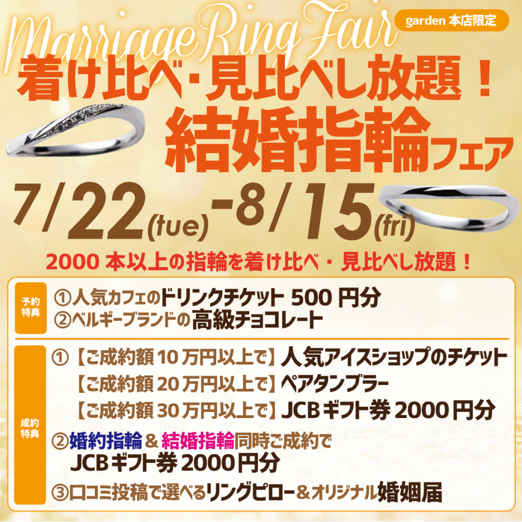 南大阪garden本店の高品質結婚指輪フェアのブランド支払い方法現金