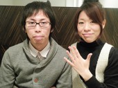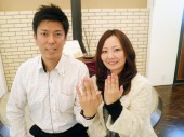 「エンゲージに続き、マリッジも購入させていただきました。対応も良く、とても良い雰囲気で気持ち良く選べました。指輪の種類も多く、店内もキレイで、チョコレートが出てくるのも嬉しい。おすすめのお店です。満足です。ありがとうございました。」