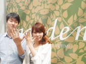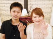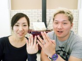 「閉店間際に、来店したのにも関わらず、ていねいに指輪の説明からしていただきました。たくさんたくさんある中から、2人にとって、気に入ったものを選ぶことができました。gardenで、一生物を見つけることができ、心より良かったと思っています。ありがとうございます。」