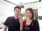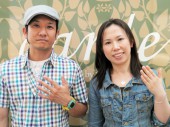 「アレンジで新郎側の指輪にブラックダイヤ入れました。思ってたより輝いてキレイです♡」
