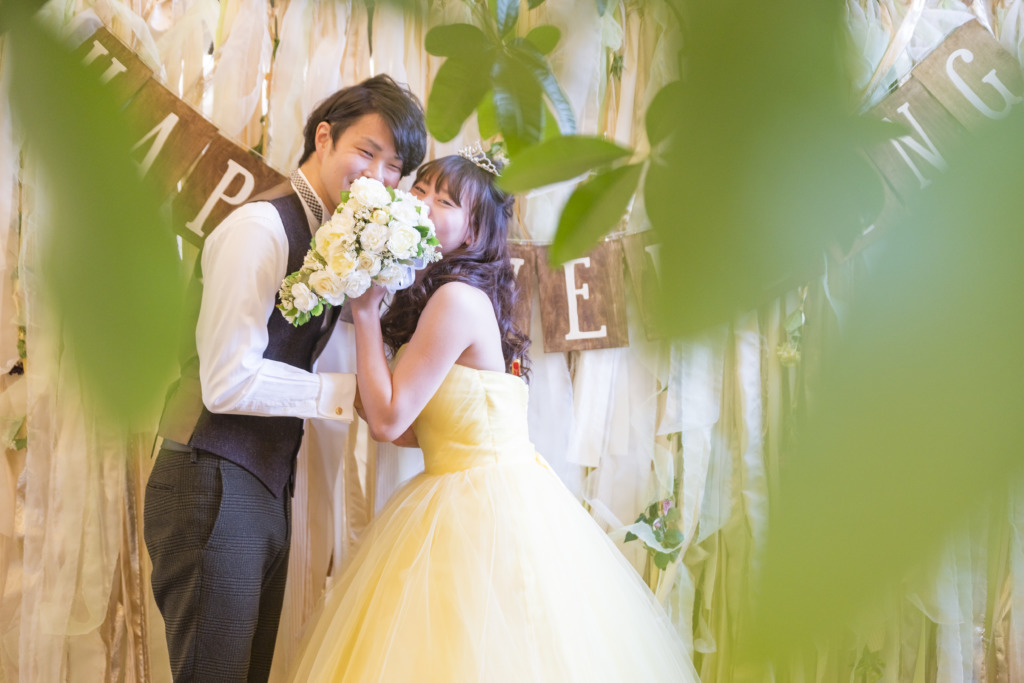 新郎様:黄色のドレスが似あってる。明るい空気感が良い感じです。