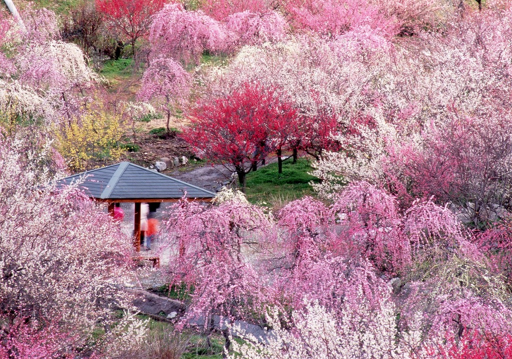 エコ福祉広場には、四季折々の花広場、ボタン園、パークゴルフ場などを整備してあります。38haの梅林公園には、実梅を心とした広大な梅林と、花梅を中心とした梅苑、農業体験のできるクラインガルデン、ブルーベリー園などを配し、東海エリア最大級の100種類4500本の梅が咲き乱れます。