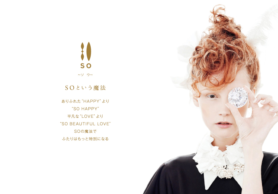 より「添う」、ふたつ、対を意味する「双」、 ふたりらしい人生をつくる「創」、幸せを「奏(かな)」でる「奏」 弾むような英語の響きに隠された、美しい日本語たち。 長い歳月を重ねると共に、自然に“SO”から“そう”へ… ふたりの穏やかな変化にも、このリングは優しく寄り添います。