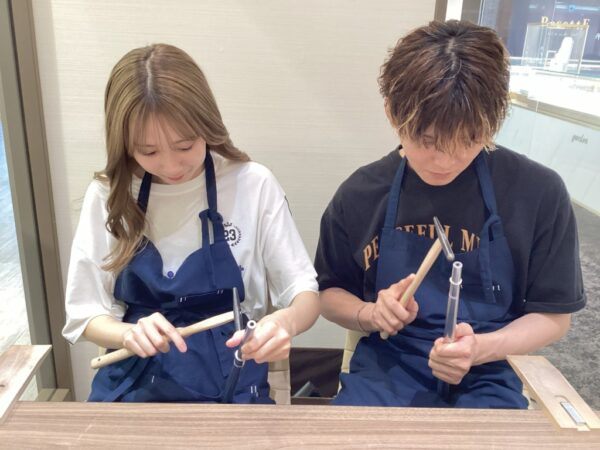 作り方はスタッフがお伝えしますので、初めての方も「私不器用だから」とご心配の方も大丈夫です。これまでに沢山のお客様がご自分だけのオリジナルリングをお作りになられました。