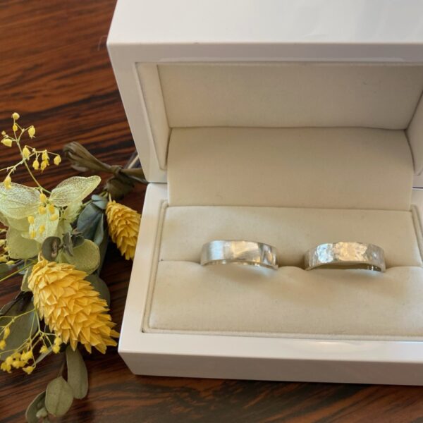 お付き合いをされているお二人には、手作りのペアリングがオススメです。garden岸和田本店では、シルバーや真鍮の比較的カジュアルな素材で作る手作りペアリングが人気です。