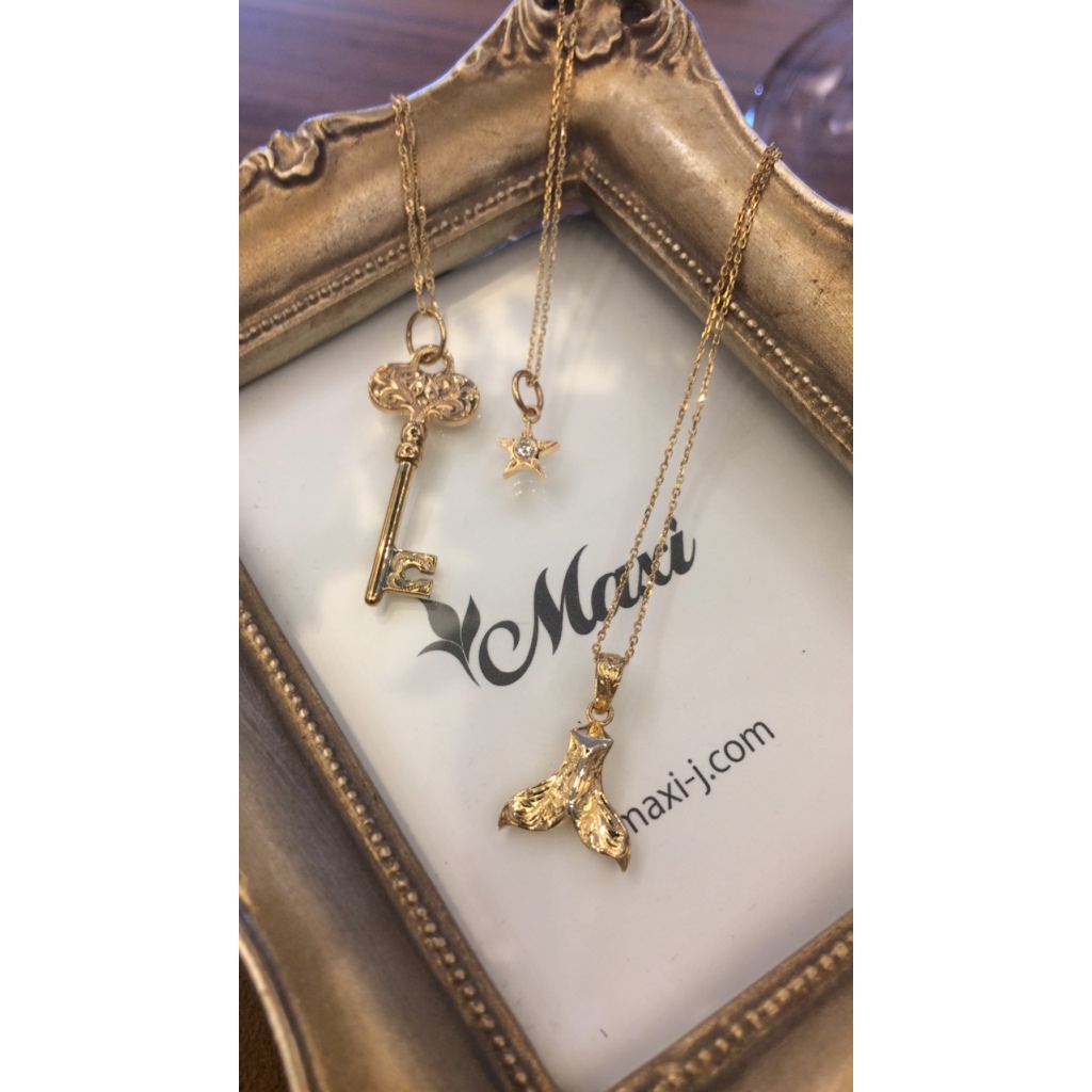 キーや、くじらの尻尾、星がモチーフの愛らしいハワイアンジュエリーのネックレスたち。パワースポットとも言われている常夏の島、ハワイの波の音が聞こえてきそうです。