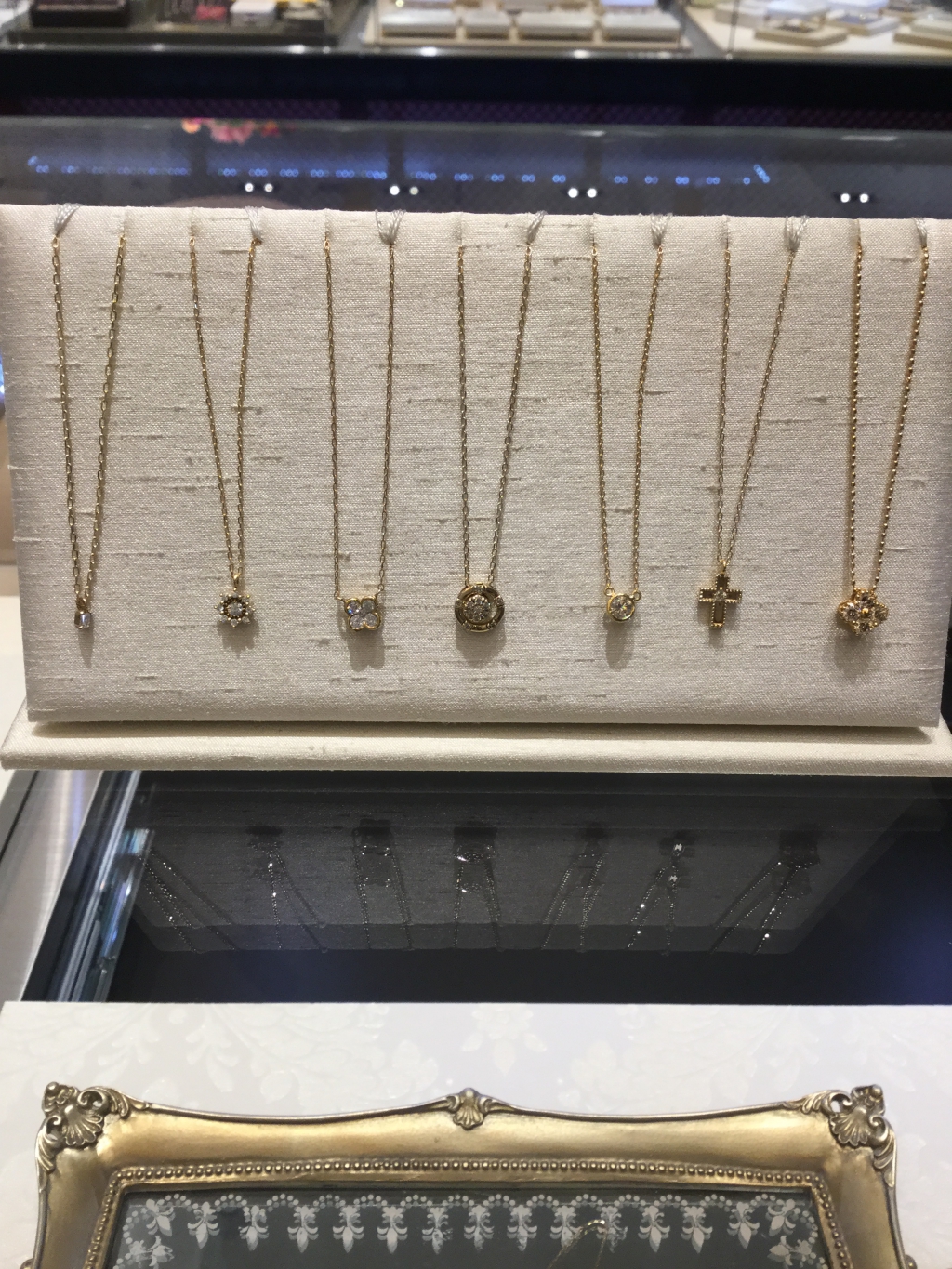 イエローゴールドのダイヤモンドネックレス。ゴールドカラーは肌馴染みが良いので、目立つジュエリーが苦手だけど、さりげないオシャレがしたい!そんな女性に支持されています。
