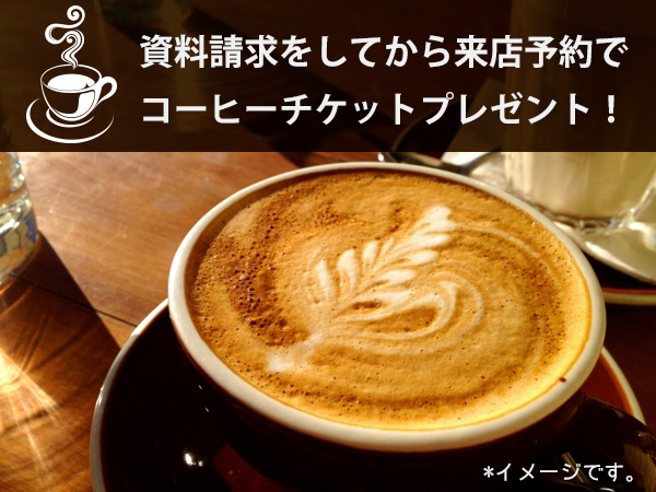 gardenの資料請求をしてから来店予約をしていただくと、某コーヒーショップで使えるチケットを店頭でプレゼント♪