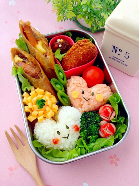 ラブラブ愛妻キャラ弁♪ハートがかわいいです~~(≧▽≦)