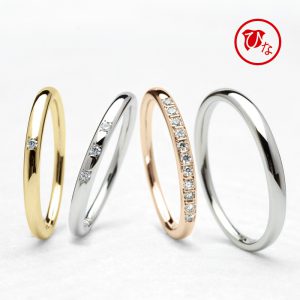 手彫りには“愛が途切れない=永遠の愛”という意味があり、二人を見守ってくれるはず。クオリティを求めたリングベースは、日本国内で『鍛造』『切削』『圧着』という