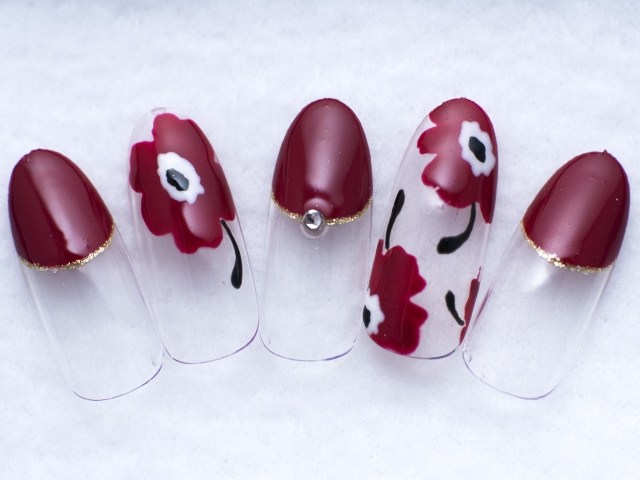 人気のマリメッコ風ネイルもボルドーで秋気分![]()