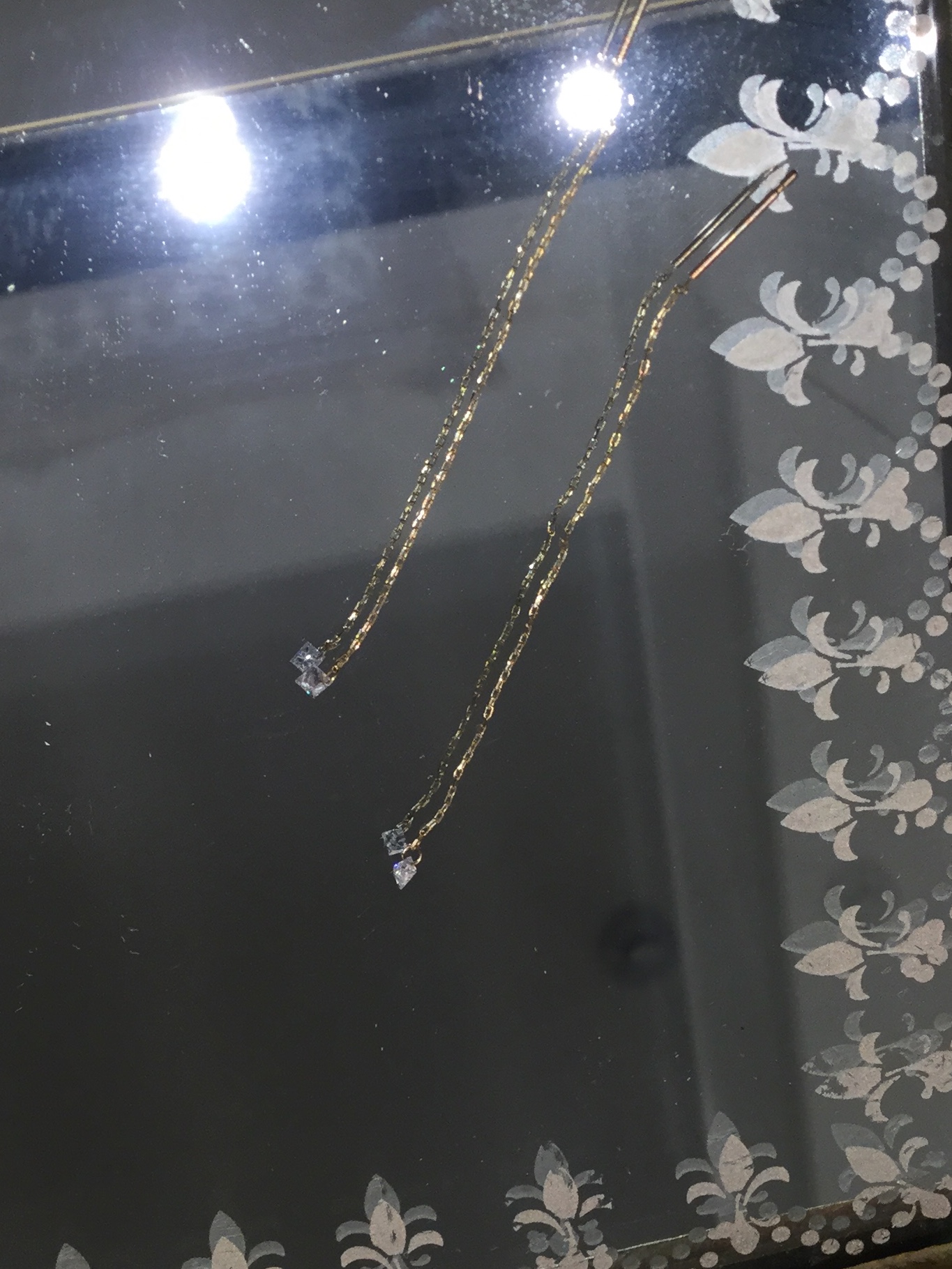 チェーンの先にさりげなく、さりげなく輝く小さなダイヤモンドがゆれるピアス。このピアスのダイヤモンドには、直接レーザーでホールを開けて、ピアスにセットされていますので、輝きを遮る枠が無く、小さな愛らしいダイヤの輝きがストレートに目に飛び込んでくるのです。