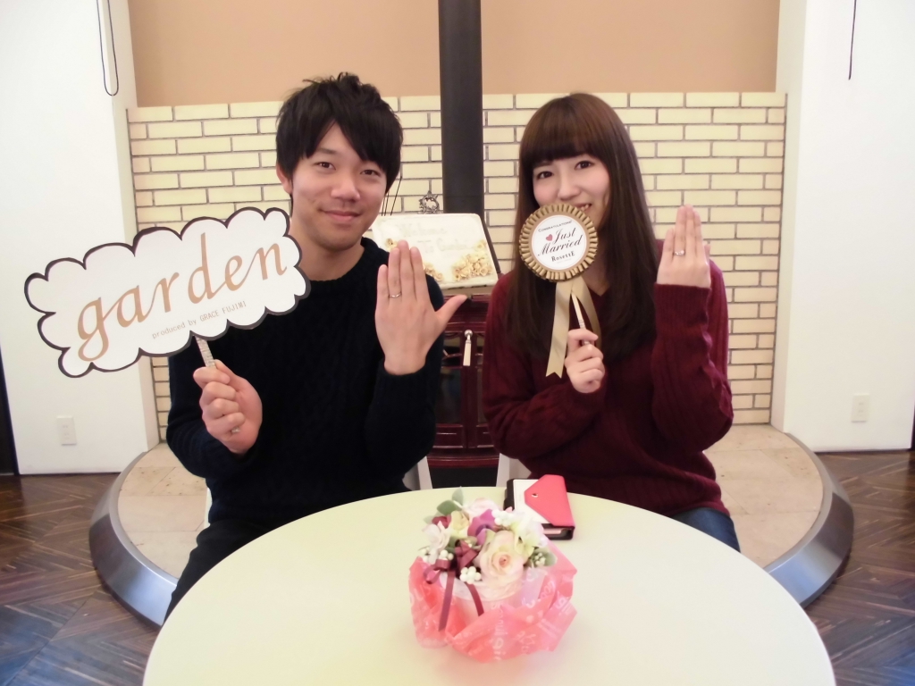 本日はgardenオリジナルの婚約指輪とひなの結婚指輪をご成約頂きましたお二人様のご紹介です♪