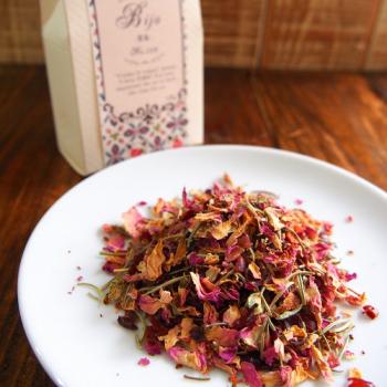 画像はハーブティーのお店、ジェームルタンさんの「BIJYO美女」という素敵な名前のお茶です。こちらは、バラのブレンドティーですが、バラには、女性に嬉しいハーブの力があるのだとか。