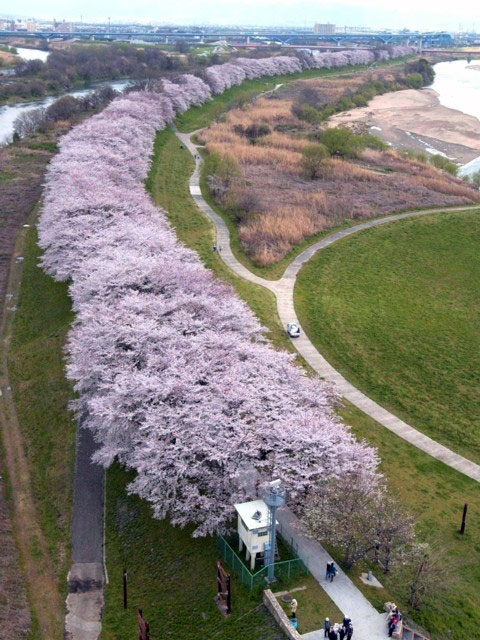 宇治川と木津川に挟まれた1.4㎞の堤に250本のソメイヨシノが