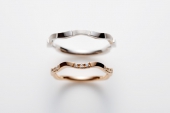 ペア感がしっかりとあり、型にはまることのない遊び心溢れたデザインです。二人がこれから見ていく景色は、今まで以上にもっとワクワクするという心をラインで表しています。メンズの表面のくぼみを埋めるように、レディースにはダイヤがあしらっており、どんな時も二人支え合って生きていく決意がこめられています。