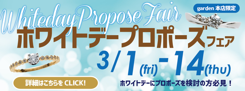 garden本店はサプライズプロポーズを応援しています!今ならプロポーズ応援フェアも開催中!